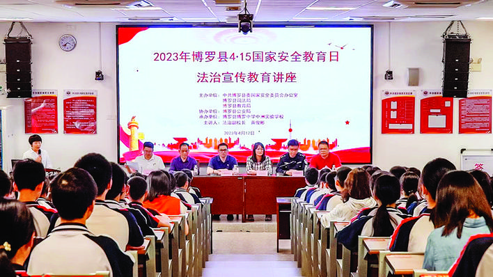 博羅中學中洲實驗學校開展國家安全教育法治宣傳進校園活動。圖片來源:惠州日報