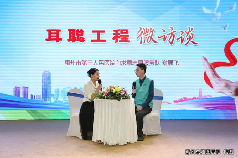 惠州市第三人民醫(yī)院白求恩志愿服務(wù)隊(duì)謝展飛講述感人故事。圖片來(lái)源:惠州東江圖片社