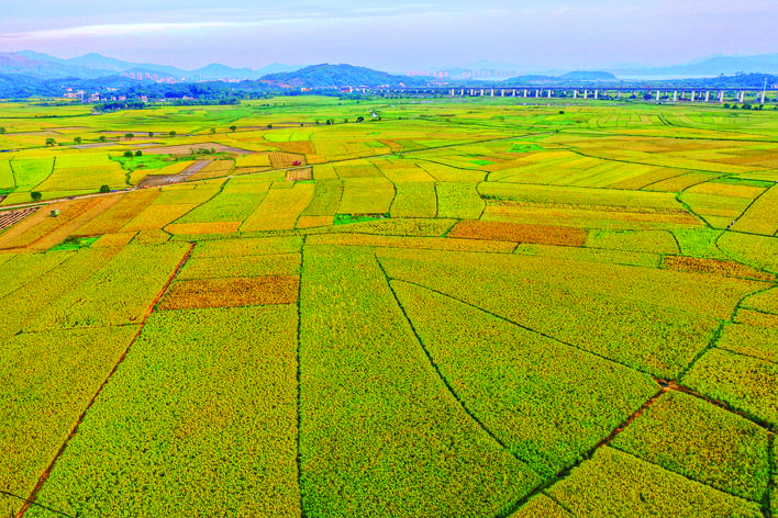 金秋,惠東縣稔山鎮(zhèn)竹園村約3800畝晚稻“豐”景如畫。金黃的稻穗壓彎了腰,層層稻浪伴著海風(fēng)翻涌。從空中俯瞰,金黃色的稻田與蔚藍(lán)的海洋相接,田間蜿蜒的小溪如銀帶環(huán)繞,遠(yuǎn)近皆是美麗鄉(xiāng)村的豐收圖景,勾勒出鄉(xiāng)村振興的生動模樣。收割機(jī)轟隆隆作業(yè),村民們忙著將剛收割的稻谷裝袋,臉上洋溢著豐收的喜悅。(惠州日報記者朱金贊 攝)