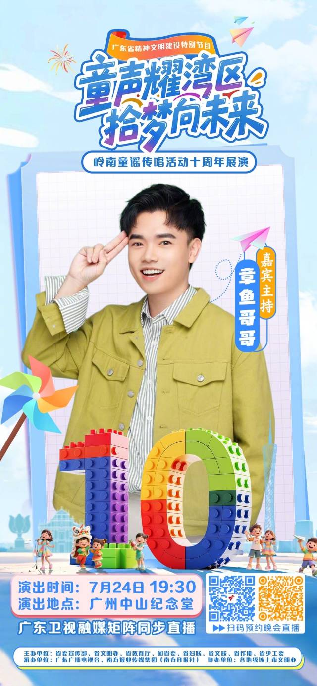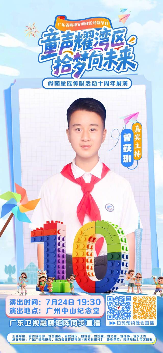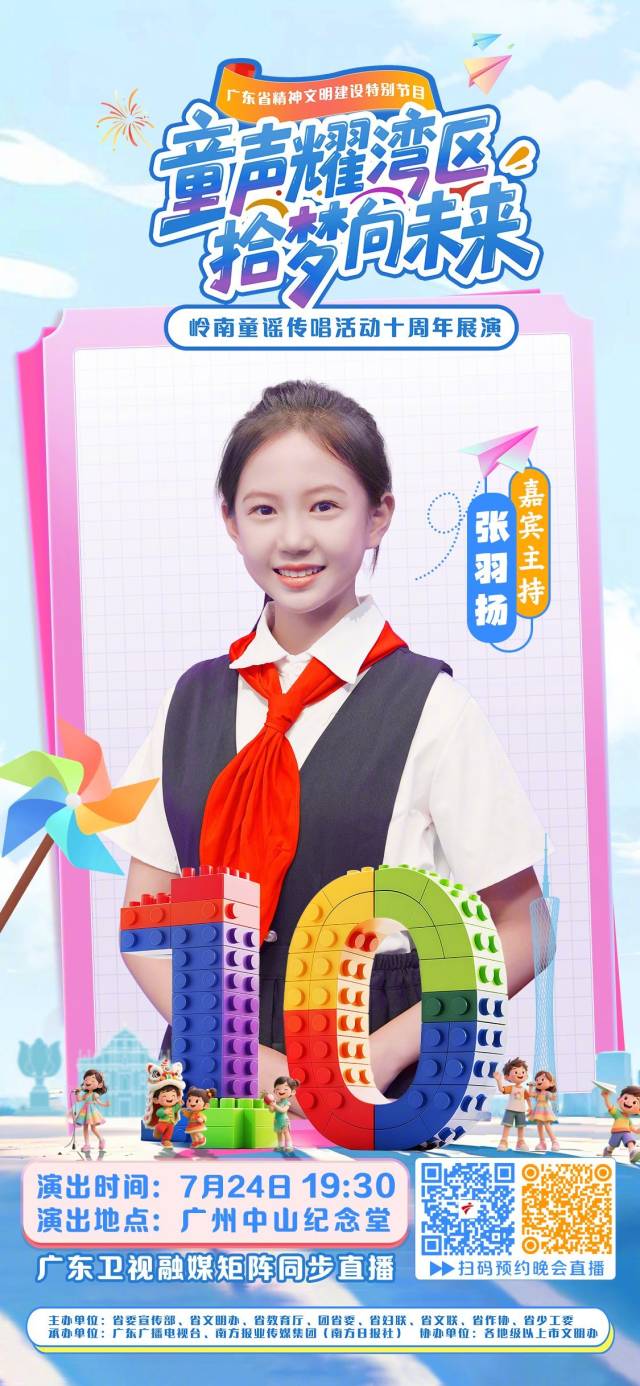 童謠,是刻在嶺南人DNA里的甜美鄉(xiāng)音,也是連接灣區(qū)未來的文化紐帶。廣東廣播電視臺主持人李佳、李驍、桃子姐姐,嘉賓主持章魚哥哥、張羽揚(yáng)、曾荻珈邀您關(guān)注廣東省精神文明建設(shè)特別節(jié)目《“童聲耀灣區(qū) 拾夢向未來”嶺南童謠傳唱活動(dòng)十周年展演》,7月24日在廣州中山紀(jì)念堂上演,廣東衛(wèi)視融媒矩陣同步直播。(編輯 卓佩儀)