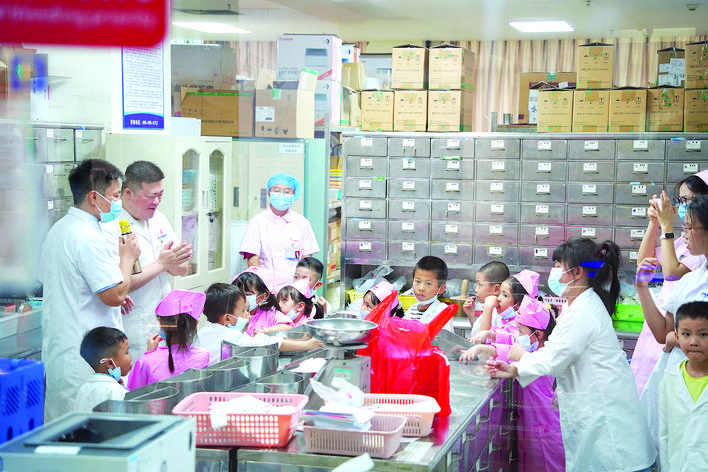研學(xué)最后一站落腳中信惠州醫(yī)院,“職業(yè)體驗(yàn)”成為活動(dòng)的最大亮點(diǎn)。小朋友們換上白大褂,化身“小醫(yī)生”“小護(hù)士”,學(xué)習(xí)傷口清潔、包扎技巧,還在中藥房學(xué)習(xí)辨識(shí)常見中藥材?!耙郧芭氯メt(yī)院,現(xiàn)在知道了醫(yī)生叔叔護(hù)士阿姨的工作有多重要?!背两襟w驗(yàn)讓健康意識(shí)與醫(yī)學(xué)認(rèn)知深深扎根在孩子們心中。