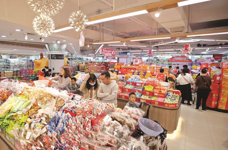 市民在麗日購物廣場(chǎng)江北店購置年貨?;葜萑?qǐng)?bào)記者黃鑫威 攝
