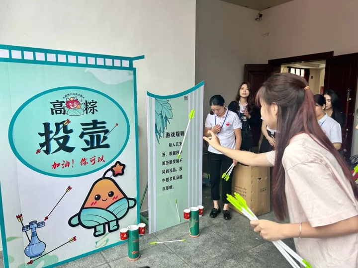 在趣園游園活動(dòng)現(xiàn)場(chǎng),設(shè)置有祈福納吉區(qū)、粽有好運(yùn)-圈粽子游戲區(qū)、一代粽師-射五毒游戲區(qū)、福滿龍舟-投壺游戲區(qū)以及惠東縣其他鄉(xiāng)鎮(zhèn)特色美食展示區(qū)等?;顒?dòng)現(xiàn)場(chǎng)人頭攢動(dòng),熱鬧非凡。