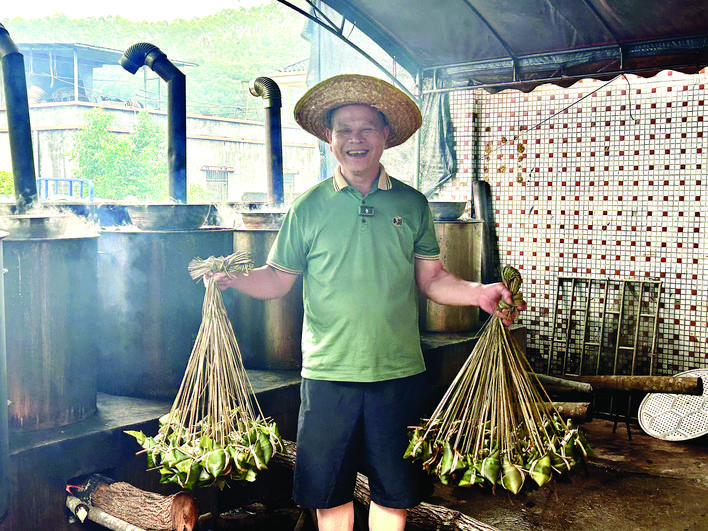 “每年農(nóng)歷二月就開(kāi)始裹粽子,端午節(jié)前后制作大量灰水粽銷(xiāo)往深圳、惠城、汕尾等地,還有客人會(huì)提前一天住在高潭,等著第二天買(mǎi)到新鮮出爐的粽子。一直到農(nóng)歷八月還會(huì)有少量訂單?!绷_觀明介紹,制作灰水粽關(guān)鍵在于要選用品質(zhì)好的純糯米,品質(zhì)低的糯米做不好;另外,在大鍋中蒸的時(shí)間要足,這樣才能保證粽子熟透,且色澤均勻通透。當(dāng)前,高潭灰水粽也正以獨(dú)特的風(fēng)味和傳統(tǒng)的工藝,走向更廣闊的市場(chǎng)。