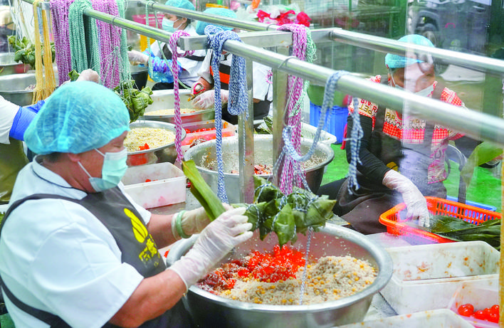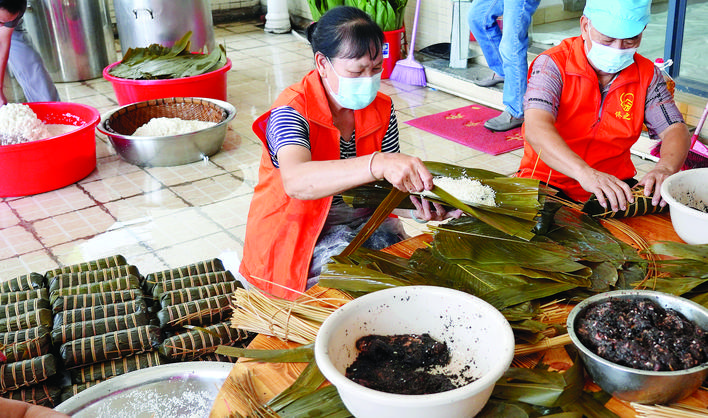 在潼僑歸僑之家,歸僑們正忙著包粽子。