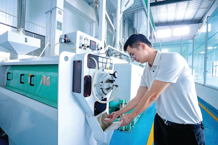 龍門縣絲苗米省級現(xiàn)代農(nóng)業(yè)產(chǎn)業(yè)園機械化生產(chǎn)線?;葜萑請笥浾唿S宇翔 通訊員龍融心 攝