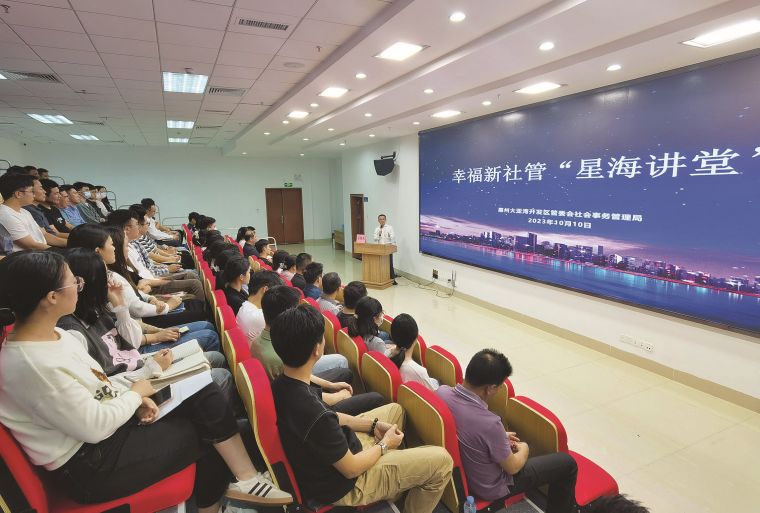 在每天忙碌的工作之后你是否會陷入焦慮、空虛?如何才能讓自己的人生過得更充實、更有意義?10月10日晚,大亞灣開發(fā)區(qū)社會事務管理局多功能廳里,該局開設的幸福新社管“星海講堂”正式開講。該局主要負責人通過充滿溫情且富有力量的講述,讓在場干部職工感受到了星辰大海、詩和遠方。