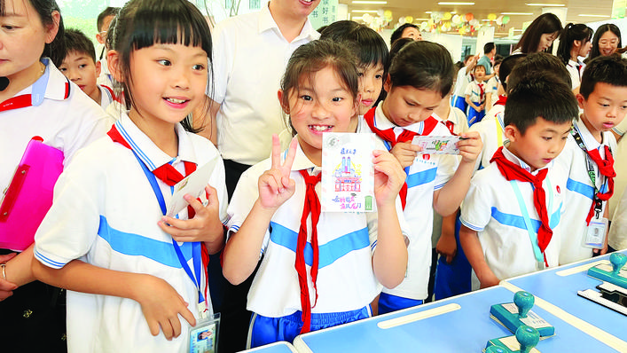 啟動(dòng)儀式現(xiàn)場(chǎng)高潮迭起,一墻之隔的場(chǎng)外也熱鬧非凡。校園文化集市人頭攢動(dòng),孩子們流連各個(gè)攤位,通過(guò)游戲互動(dòng)、知識(shí)搶答、觀看展板等形式,學(xué)習(xí)版權(quán)保護(hù)知識(shí),感受傳統(tǒng)文化魅力。