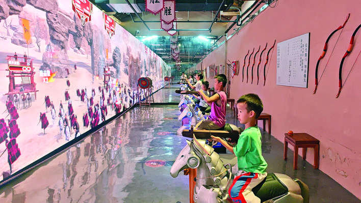 游客在長(zhǎng)寧鎮(zhèn)徐田村五經(jīng)魁體驗(yàn)將領(lǐng)游戲項(xiàng)目?;葜萑?qǐng)?bào)記者盧泓宇 攝