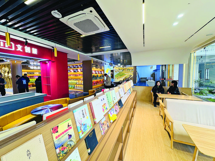 會客廳集農(nóng)產(chǎn)品展銷、文創(chuàng)購物、飲吧書吧于一體。