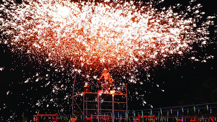 梁化鎮(zhèn)小禾洞見(jiàn)生態(tài)園非遺打鐵花表演。 通訊員戴相國(guó) 攝