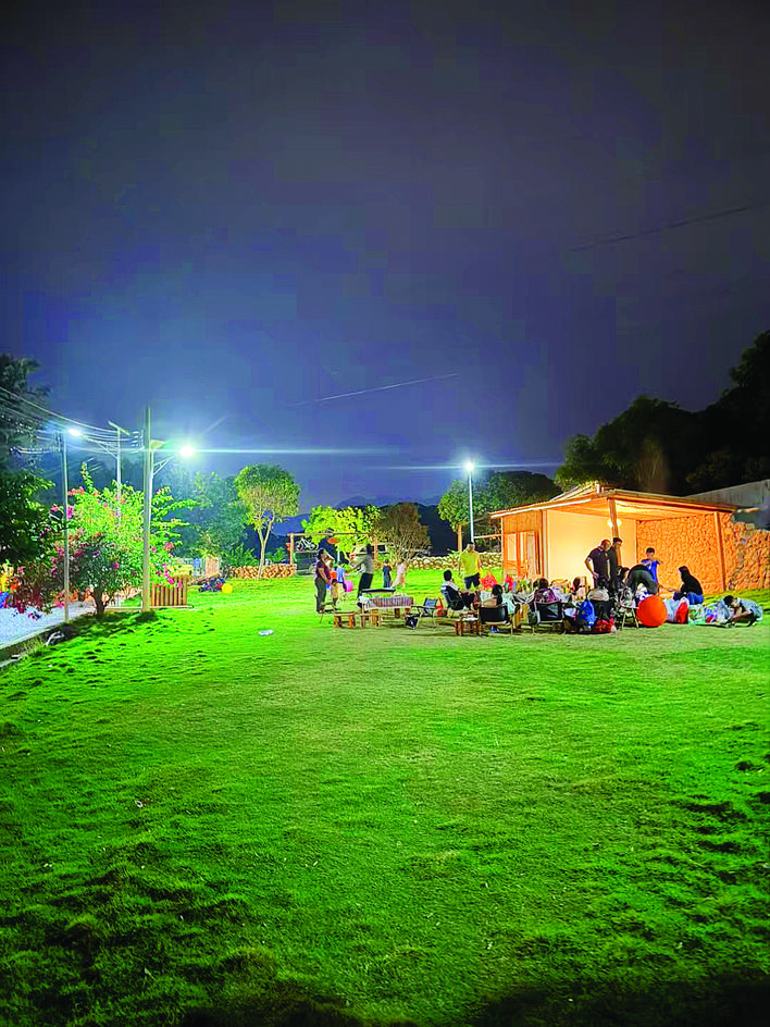 “六顆樹潮玩營地”是一個戶外空間,定位“自然生態(tài)+多元潮玩”?!跋氚殉蓖姘徇M山野?!痹摖I地負(fù)責(zé)人之一干志文說。營地分露營區(qū)、燒烤區(qū)、兒童游樂區(qū)、團建草坪分區(qū),既完整保留山林間的野趣,又配備貼合現(xiàn)代休閑需求的完善功能。