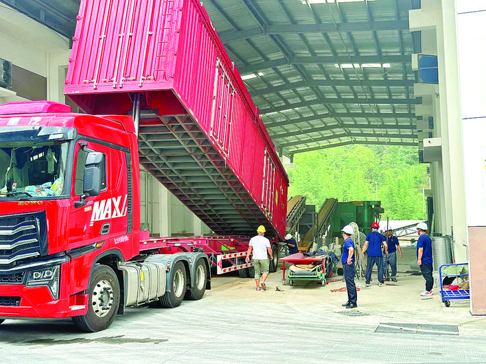 滿載金黃稻谷的車輛依次完成登記進(jìn)場(chǎng)、過磅稱重、扦樣檢測(cè)、入庫卸糧等流程。 惠州日?qǐng)?bào)記者黃宇翔 通訊員龍融心 攝