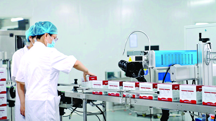 君悅公司生產(chǎn)車間里,工人有條不紊地進(jìn)行藥品裝箱等作業(yè)。 惠州日?qǐng)?bào)記者黃宇翔 通訊員龍門宣 攝