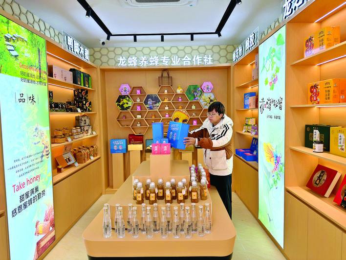 依托豐富的旅游資源,龍門以農(nóng)文旅融合為抓手拓寬銷售渠道,乘著環(huán)南昆山—羅浮山縣鎮(zhèn)村高質(zhì)量發(fā)展引領(lǐng)區(qū)和218最美旅游公路建設(shè)的東風(fēng),在永漢河驛站打造120平方米的蜂產(chǎn)業(yè)綜合服務(wù)站,于2025年5月啟動建設(shè),國慶節(jié)投入試運(yùn)營。服務(wù)站以“帶一份甜蜜回家”為主題,集養(yǎng)蜂文化展示、蜂產(chǎn)品品鑒與特色銷售于一體,讓游客在體驗(yàn)中認(rèn)可產(chǎn)品、傳播品牌。目前,服務(wù)站已與環(huán)南昆山—羅浮山縣鎮(zhèn)村高質(zhì)量發(fā)展引領(lǐng)區(qū)內(nèi)20余個行政村、7家養(yǎng)蜂專業(yè)合作社簽訂蜜源產(chǎn)銷協(xié)議,與縣內(nèi)蜂農(nóng)簽訂訂單養(yǎng)殖協(xié)議,成為帶動蜂農(nóng)增收、推動“甜蜜事業(yè)”發(fā)展的重要平臺。