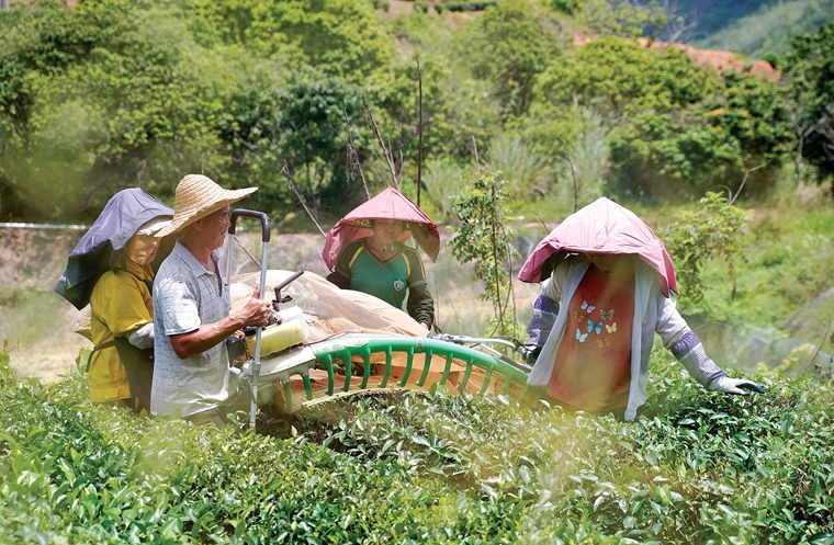白盆珠鎮(zhèn)擬打造兩個(gè)巖茶公園。圖為茶農(nóng)在采茶。