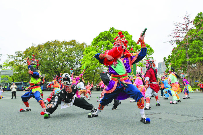 近年非?;鸬膹V東潮汕地區(qū)的英歌舞,也出現(xiàn)在“舞動中國龍”——龍舞大巡游活動現(xiàn)場,點燃了觀眾的熱情。