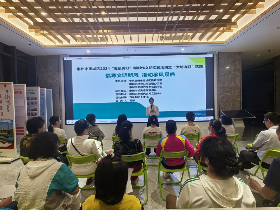 11月1日晚,惠州市2024年“惠聚美好”新時(shí)代文明實(shí)踐活動(dòng)之“大地流彩”活動(dòng)之“倡導(dǎo)文明新風(fēng) 推動(dòng)移風(fēng)易俗”宣講活動(dòng)在惠城區(qū)新時(shí)代文明實(shí)踐中心大會(huì)議室隆重舉行。