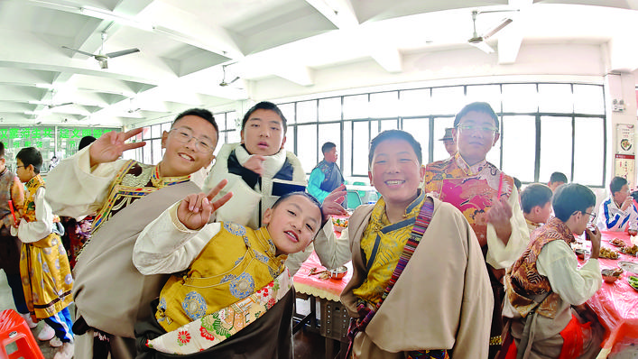 除夕,惠州市八中西藏班的孩子們吃年飯前開心合影。