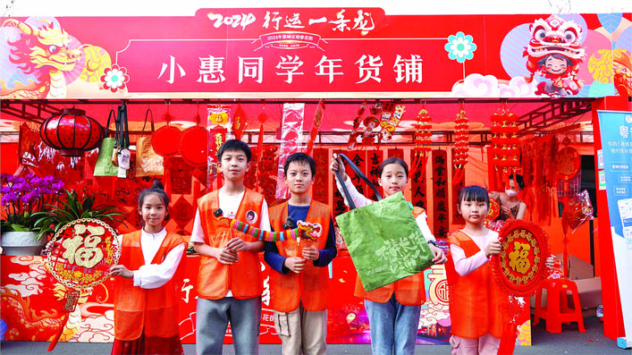 惠州日報(bào)小記者在小惠同學(xué)年貨鋪賣年貨。