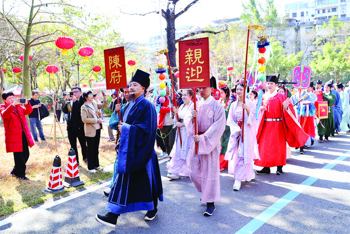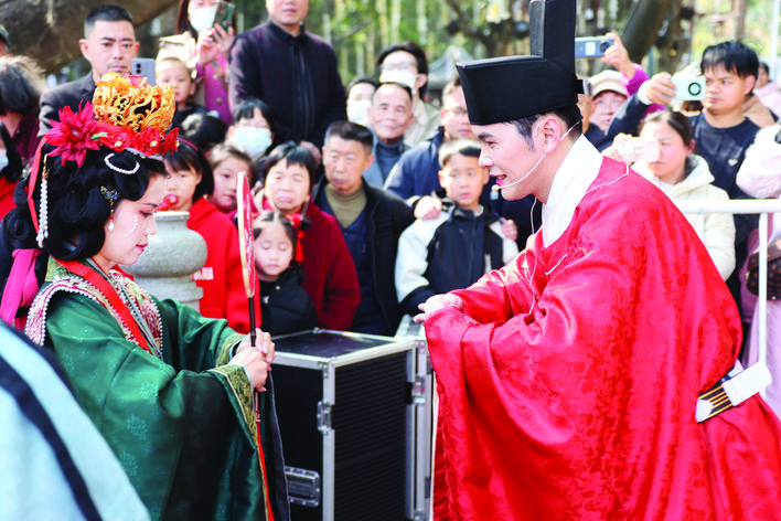 當(dāng)天,由市委宣傳部、市文化廣電旅游體育局指導(dǎo),惠州日?qǐng)?bào)社、惠州市西湖景區(qū)管理中心主辦的“‘羅浮山下四時(shí)春’——嶺南書(shū)院·豐湖書(shū)院春節(jié)主題活動(dòng)”進(jìn)入第三天,為現(xiàn)場(chǎng)市民游客及線上網(wǎng)友帶來(lái)了一場(chǎng)“夢(mèng)回大宋·宋式婚禮秀”。
