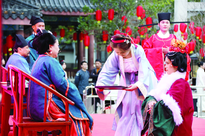 鳳冠霞帔、十字披紅、三書(shū)六聘,儀式感滿滿的宋式婚禮秀再現(xiàn)宋代充滿詩(shī)意的生活場(chǎng)景,解碼宋式文化底蘊(yùn)。