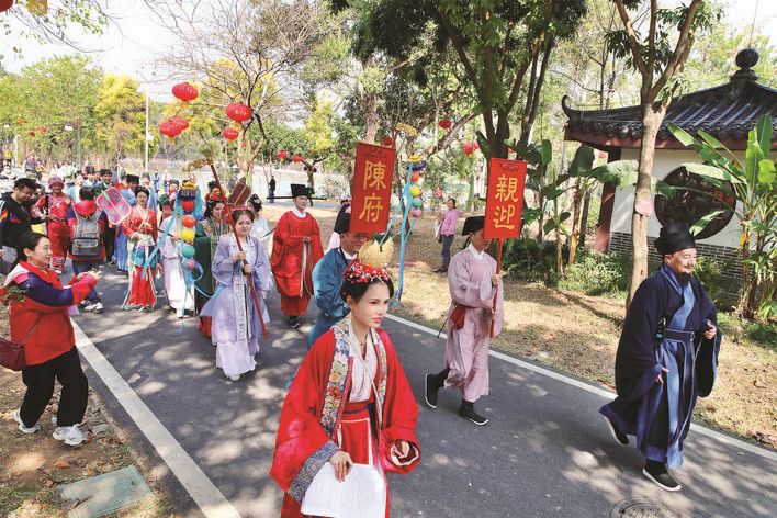 由市委宣傳部、市文化廣電旅游體育局指導(dǎo),惠州日?qǐng)?bào)社、惠州市西湖景區(qū)管理中心主辦的“‘羅浮山下四時(shí)春’——嶺南書(shū)院·豐湖書(shū)院春節(jié)主題活動(dòng)”在惠州西湖景區(qū)火熱進(jìn)行。作為活動(dòng)重要部分的“夢(mèng)回大宋·宋式婚禮秀”,從大年初一到初七持續(xù)上演,吸引眾多市民和游客觀看。在一場(chǎng)場(chǎng)精彩演出的背后,演員團(tuán)隊(duì)又付出了怎樣的努力?這背后有哪些感人的故事?