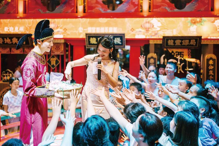 一處處精心打造的場景讓游客如身處大型情景劇中,每一位游客都是其中主角。猜燈謎、投壺、逛市集、拍照打卡疊加一系列定制服務(wù),讓食客的“文食旅”體驗(yàn)再度加碼,帶來一場集吃、喝、玩、樂、購于一體的多重體驗(yàn)。