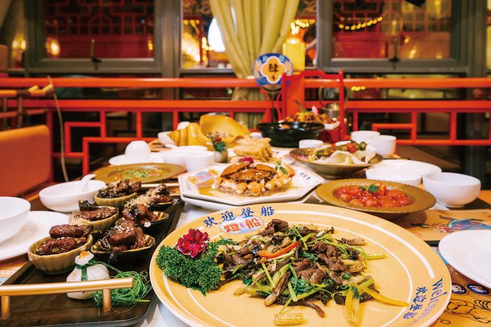 一封“圣旨”,暗含玄機(jī)。蟹肉咸蛋肉餅、玉環(huán)炒脆肉、鹵汁五頭鮑、涼拌鯊魚皮、將軍海膽炒飯……一道道美味佳肴隨著“圣旨”展開,這一份獨(dú)特的菜單之內(nèi)是伴隨著一代惠州人成長的專屬于喜碧海鮮的好味道?;葜菅顼嬑幕c大唐文化在此深度融合,如金風(fēng)玉露相逢,讓“燈船”大唐不夜城在“好玩”之余更“好食”。