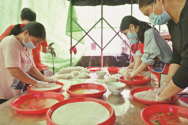 村民忙著制作水糍。圖片來源:惠州日報(bào)記者楊建業(yè) 攝