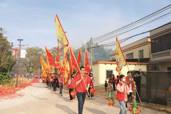 “姚夫人巡游”已有470多年的歷史,入選博羅縣級非物質(zhì)文化遺產(chǎn)名錄,深受當(dāng)?shù)卮迕竦南矏郏钱?dāng)?shù)氐泥l(xiāng)愁和文化烙印。每年的大年初六,“姚夫人巡游”如約而至。這一天,村里鑼鼓喧天,鞭炮齊鳴。今年,姚夫人巡游如期開展,近兩百人的巡游隊(duì)伍,所到之處即為焦點(diǎn)。