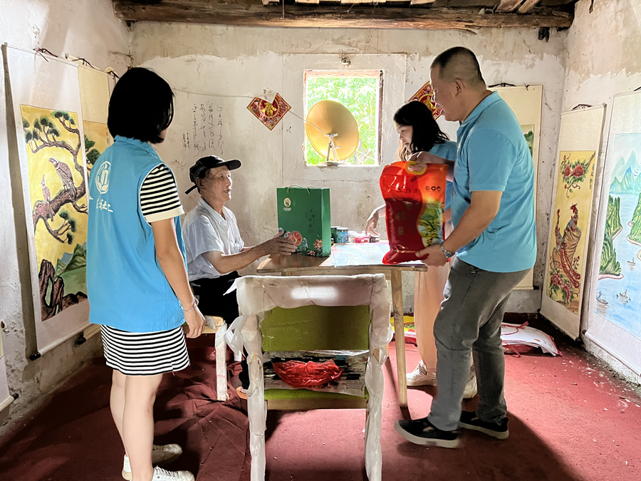 用愛陪伴。志愿者們?cè)缭鐏?lái)到墨園村,帶著準(zhǔn)備好的中秋禮物和慰問品,慰問了村里的孤寡老人。給老人們送去了月餅、大米等物資,還陪伴聊天,傾聽他們的故事,并囑咐老人們保重身體。一份愛心一句暖心的話,讓老人們倍感溫暖,不在感到孤獨(dú)與寂寞。